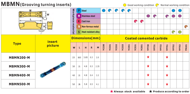 Our MBMN Grooving Inserts are designed for precision and efficiency in grooving and parting applications. With a range of sizes and coatings available, these inserts cater to diverse machining needs, making them ideal for both roughing and finishing operations.
